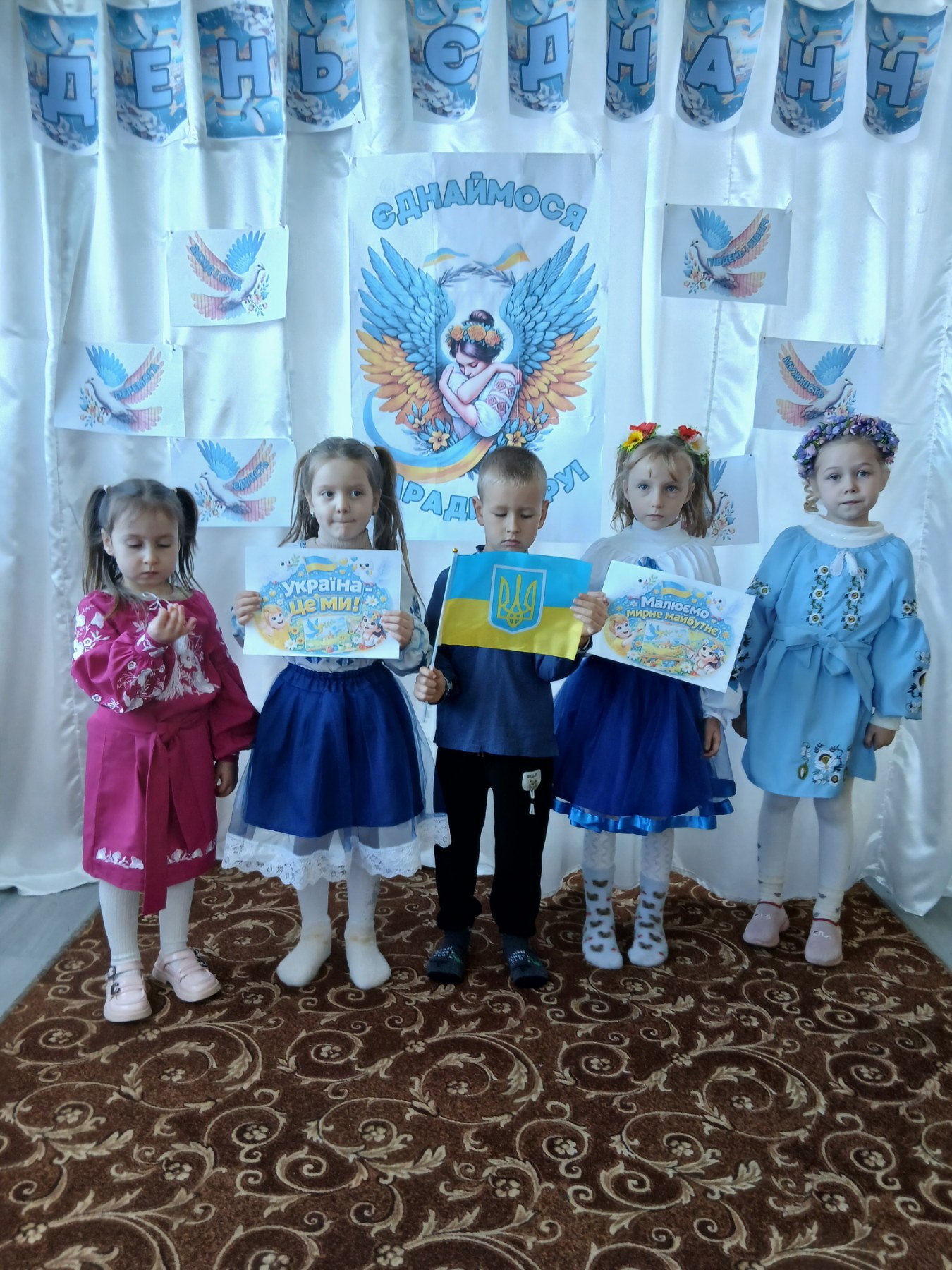У нашому садочку пройшов виховний захід "В єдності - наша сила". Діти читали вірші, співали пісень, зробили цікаві аплікації. Ми єдина країна! Незважаючи на усі негаразди, що відбуваються зараз всі просимо одного - миру, спокою, міцної та квітучої держави! Нехай нас завжди обєʼднують любов до рідної землі, віра в Перемогу та підтримку одне одного. Разом до миру та світлого майбутнього.