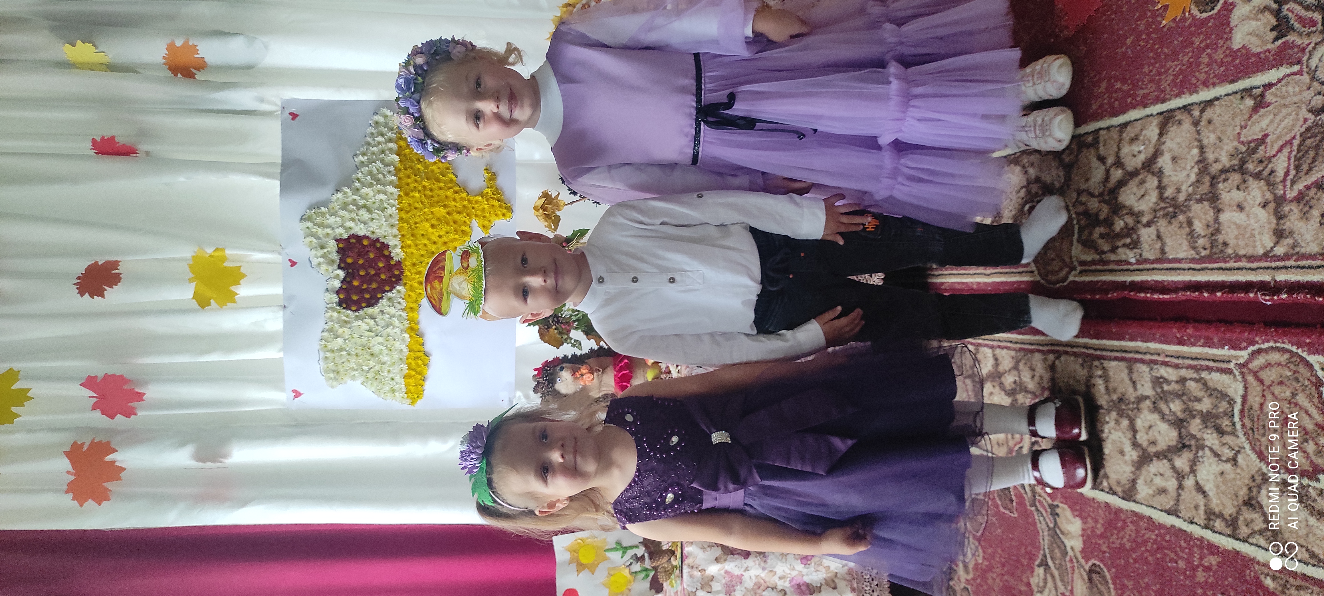 Дівчатка перетворились в чарівні осінні квіточки, а хлопчики - в осінні грибочки, щоб показати усім присутнім на святі красу золотої пори року! У затишному залі панувалатепла, яскрава атмосфера осіннбого дива!